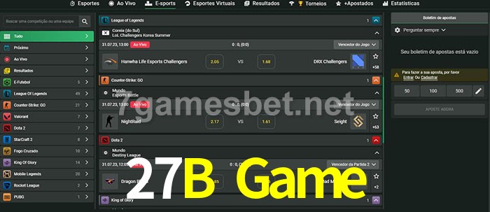 A aposta 27B Game oferece aos jogadores a experiência mais conveniente de apostas em eSports!